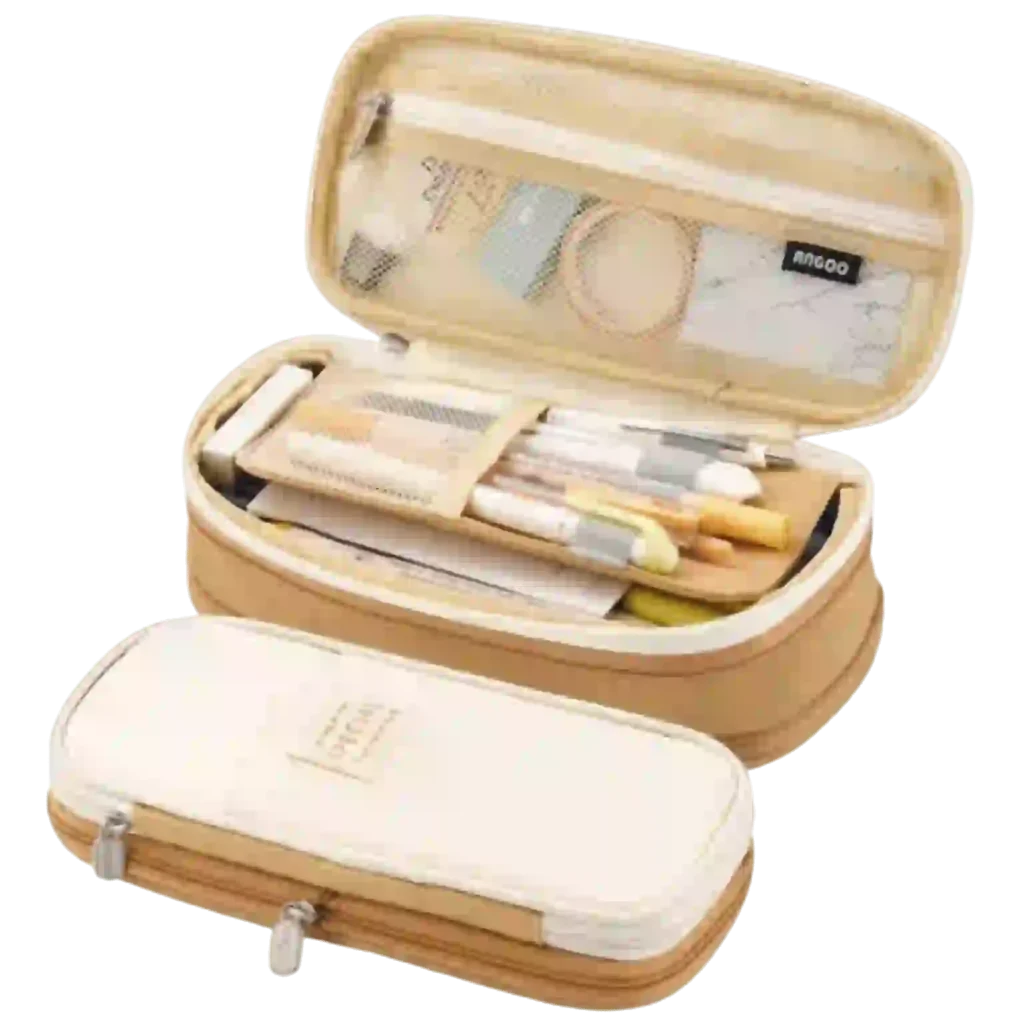 Multi-Compartment Pencil Case (Canvas, Zip Closure, Portable)